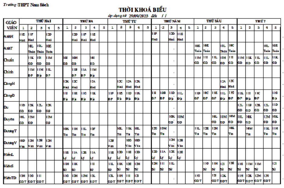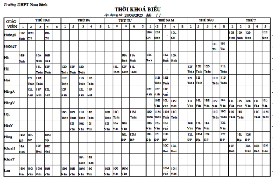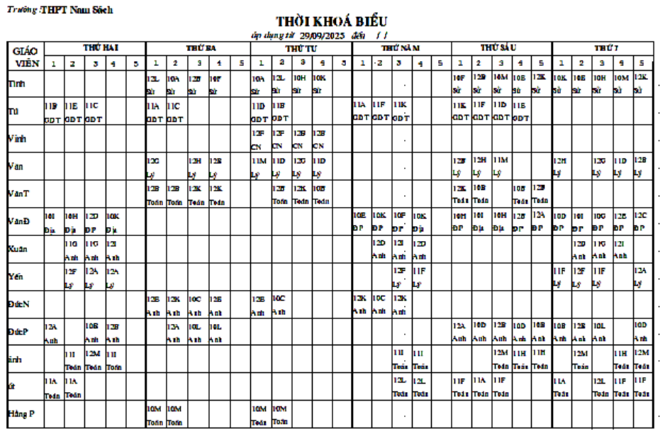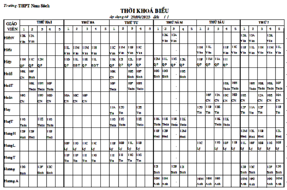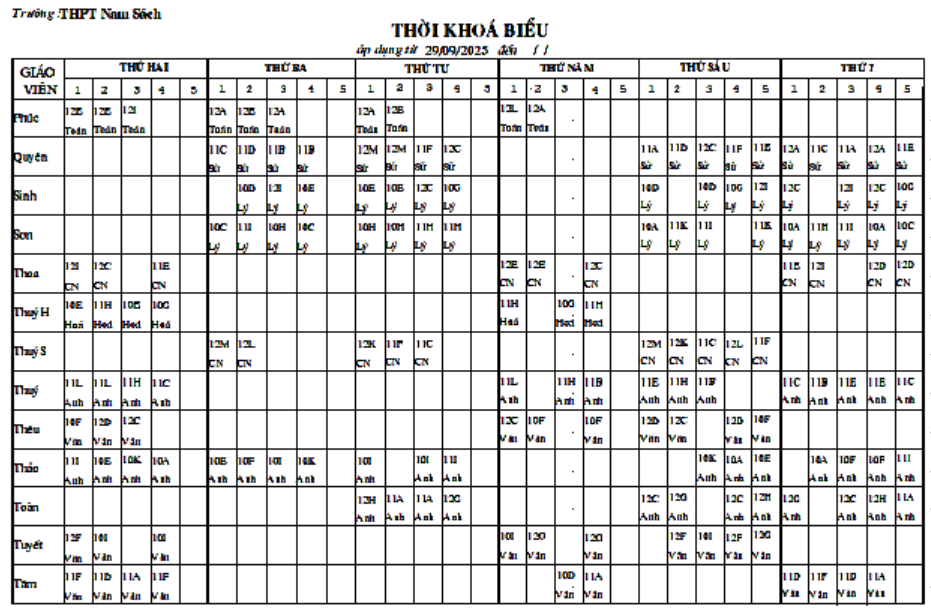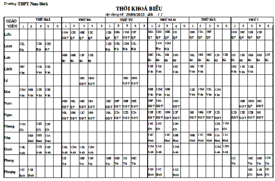 Thời khóa biểu